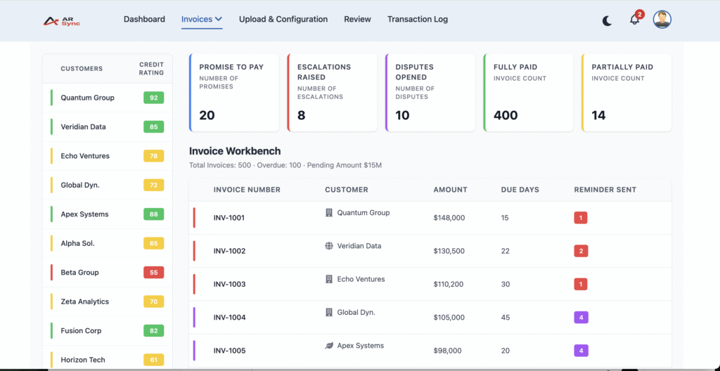 AR Sync doesn’t just automate workflows—it actively validates and fixes issues across invoices, contracts, POs, and supporting documents before they impact collections.
